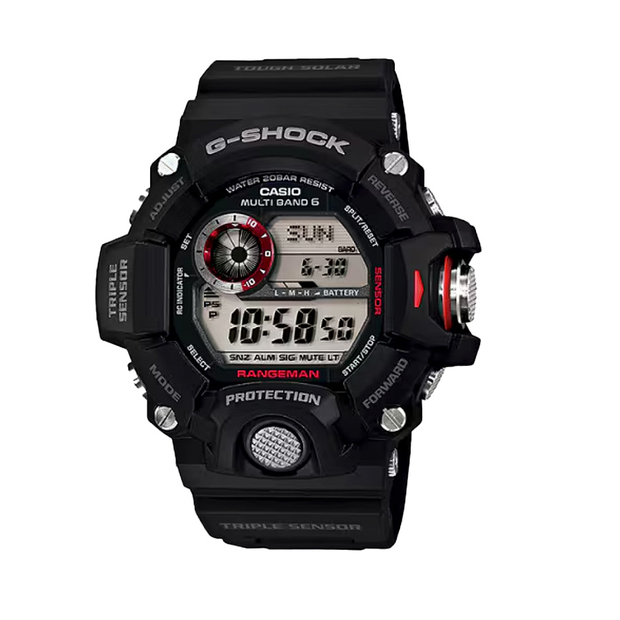 The Casio G-Shock GW-9400-1DR is a digital watch from the Master of G RANGEMAN series, designed for rugged conditions and survivalists. It is known for its Triple Sensor technology and its ability to withstand demanding environments, making it a reliable tool for rangers and rescue crews.