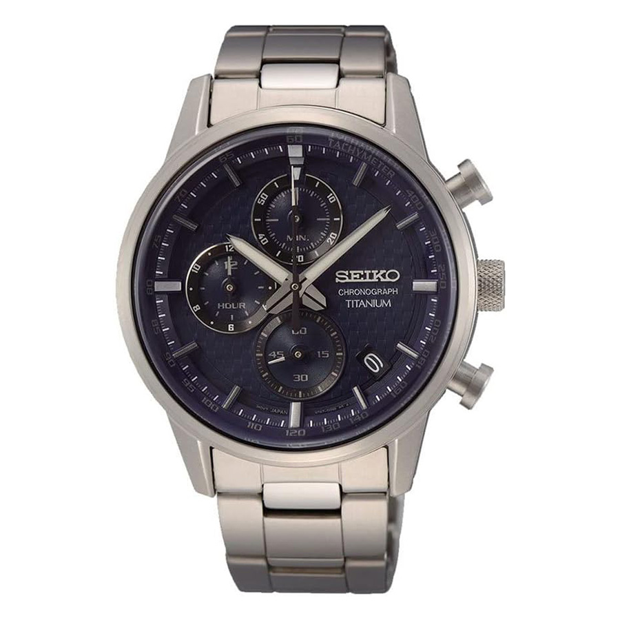 The Seiko SSB387P1 is a men’s quartz chronograph watch from the Classic or Sport collection. It features a blue or dark blue dial and a lightweight titanium case and bracelet. The watch is known for its durable and comfortable feel, combining sporty functionality with a refined, versatile design.